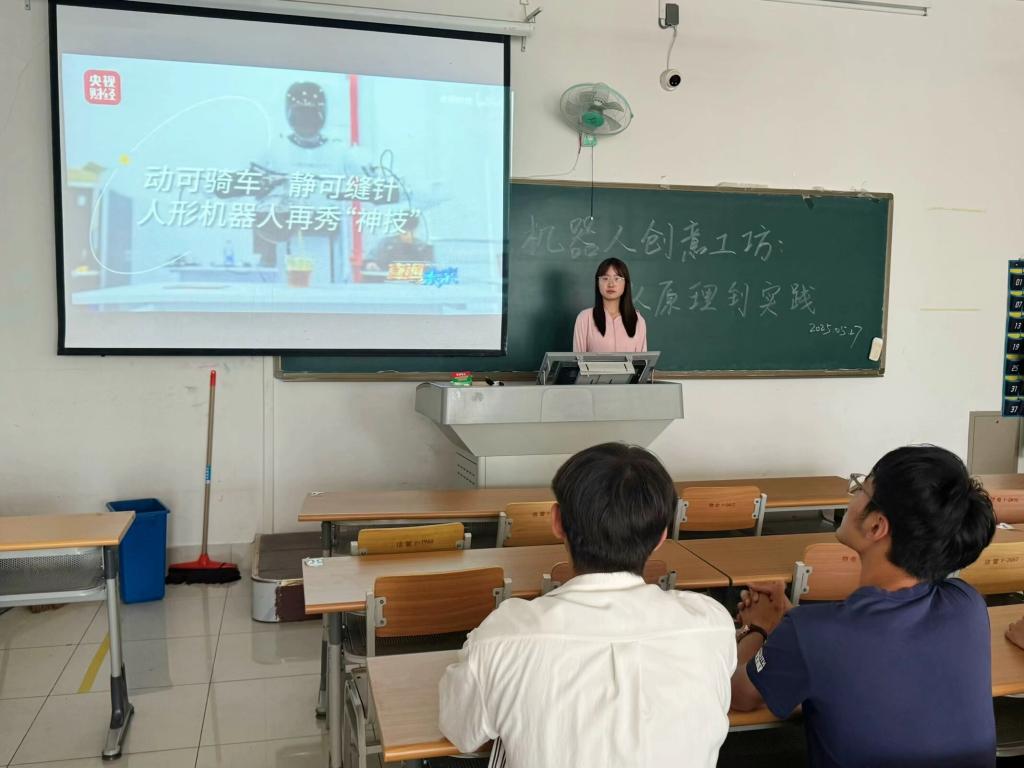 为展现机械创新与智能科技的融合魅力,探讨机器人技术前沿发展趋势,5月27日,物电学院机器人联盟社团在明理楼223教室开展“机器人创新工坊:从原理到实践”观影活动。