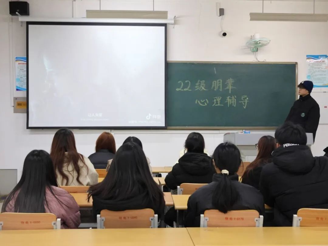 为做好学院心理健康教育工作,发挥学生的朋辈互助作用,帮助学生解决心理困扰,提高学生心理素质,物电学院于11月30日在明理楼118教室开展2022级朋辈心理辅导活动。