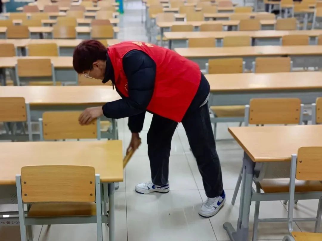 活动中,志愿者们分工明确、相互配合,用抹布和清洁剂等工具擦拭教室玻璃、课桌和墙壁,及时清理角落杂物防止病菌滋生,并开窗通风保持空气流通,同时仔细清扫走廊、卫生间地面的纸屑和垃圾,确保教学楼内干净整洁。在志愿者们的共同努力下,教学楼变得整洁靓丽、焕然一新。