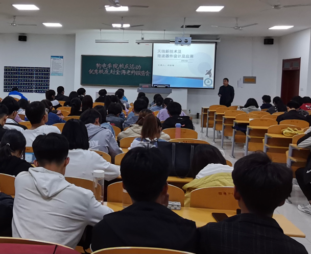 刘金海老师在主持会议中主要从天线工作原理、天线与无线电系统、低剖面全向天线、BD定向天线、阵列天线、LTCC微波器件六个方面为同学们进行讲解,让同学们对现代通信天线新技术走了一定的了解,同时刘金海老师还提到了导航天线、雷达系列天线、5G天线等,现代通信天线新技术应用十分的广泛,激发了同学们学习的热情,除此以外,刘金海老师还谈到了对同学们的期望以及未来展望。