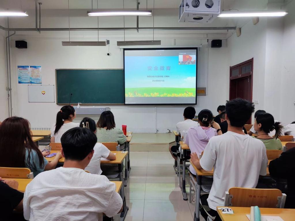 为进一步强化学生的安全意识,提高防范风险的能力,落实学校安全教育制度,建立和健全安全宣传教育的长效机制,物电学院于6月11日在明理楼开展安全教育主题思政课。本次思政课由物电学院党委副书记申青林主讲,物电学院全体学生参加。