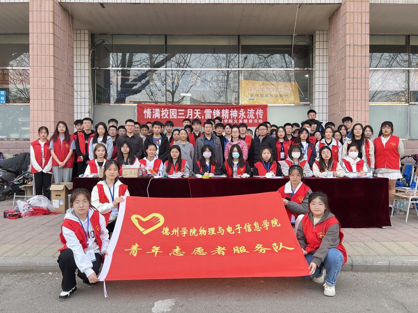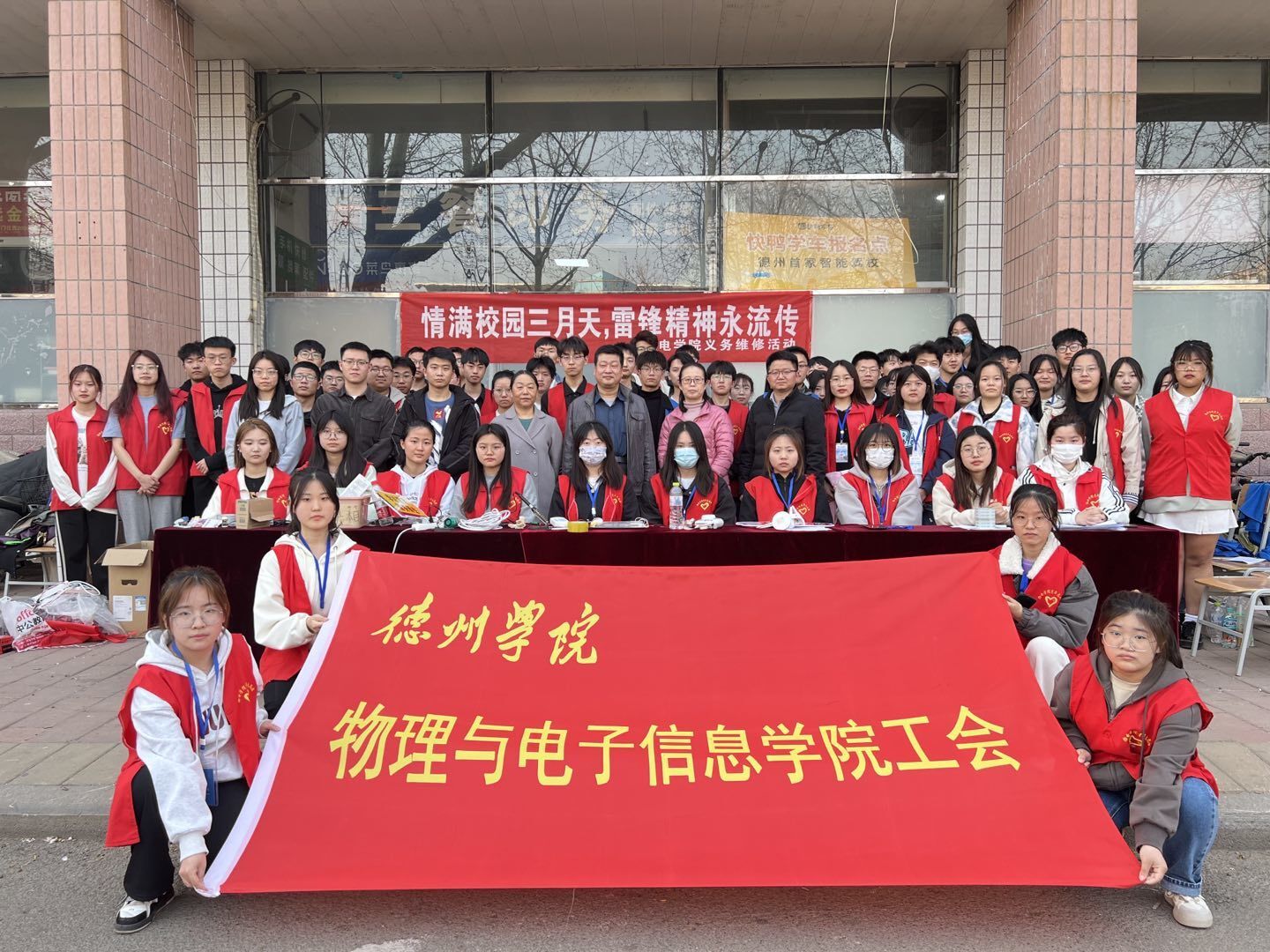 活动吸引了众多师生参与,他们纷纷带着设备来到活动地点维修。维修人员用自己所学的专业知识,为设备进行细致地修复,为全校师生提供尽心周到的服务。活动最后,服务人员与领导老师合影留念,活动圆满结束。