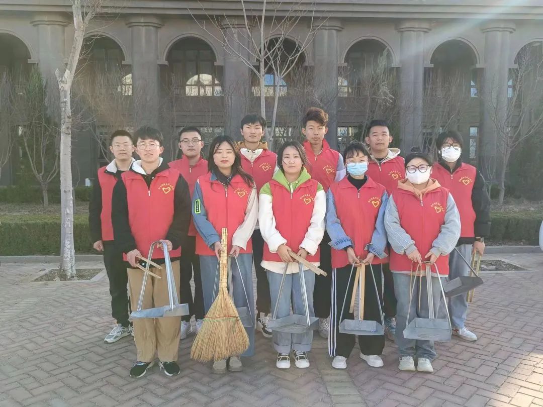 活动中,志愿者们身穿“红马甲”,领取工具,在校园里开展大扫除活动。志愿者明确清扫范围及清扫要求后,分组对绿化带及路面垃圾进行了清扫,并将楼后自行车摆放整齐,清理墙上、栏杆上的小广告。