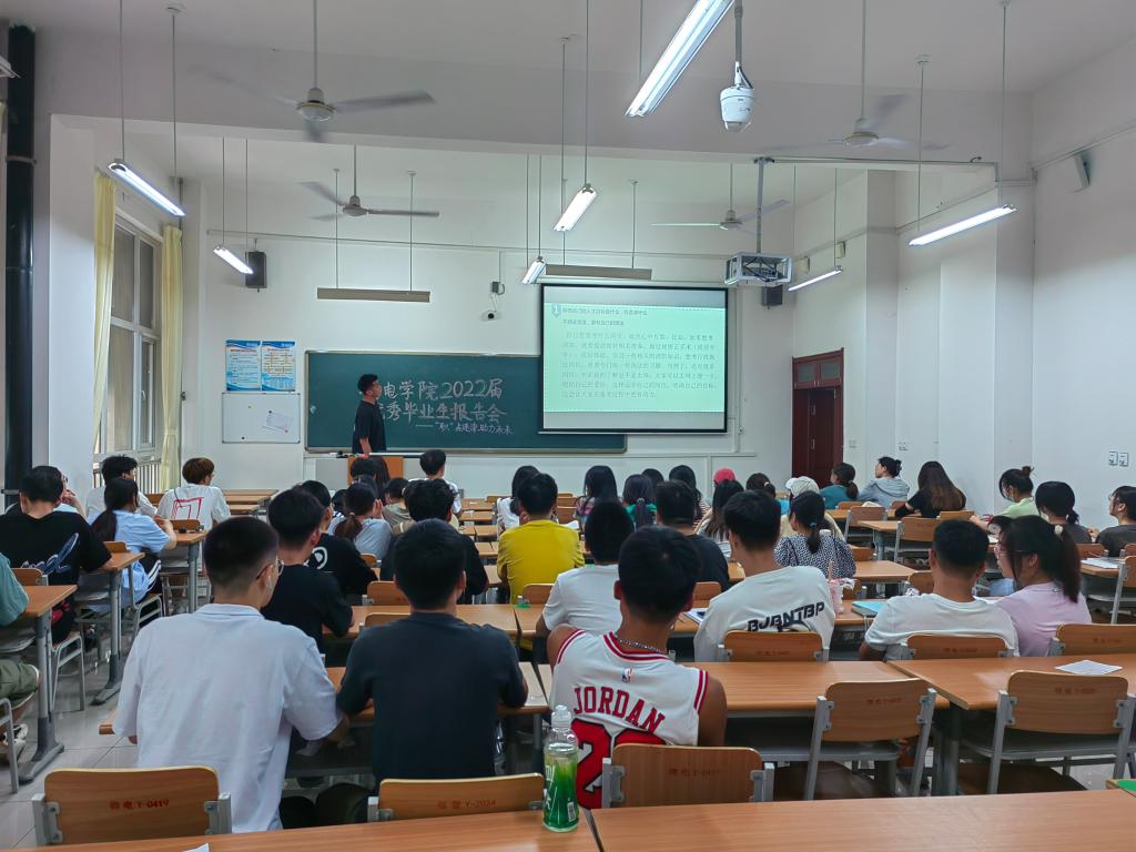 为贯彻落实教育部“2022届全国普通高校毕业生就业创业促进行动”的相关要求,激励和引领全体同学走向成功之路。5月28日,物电学院在明理楼0227举办优秀学子报告会,由预毕业生18级物联网工程孙潇龙同学,物联网工程许胜博同学主讲。