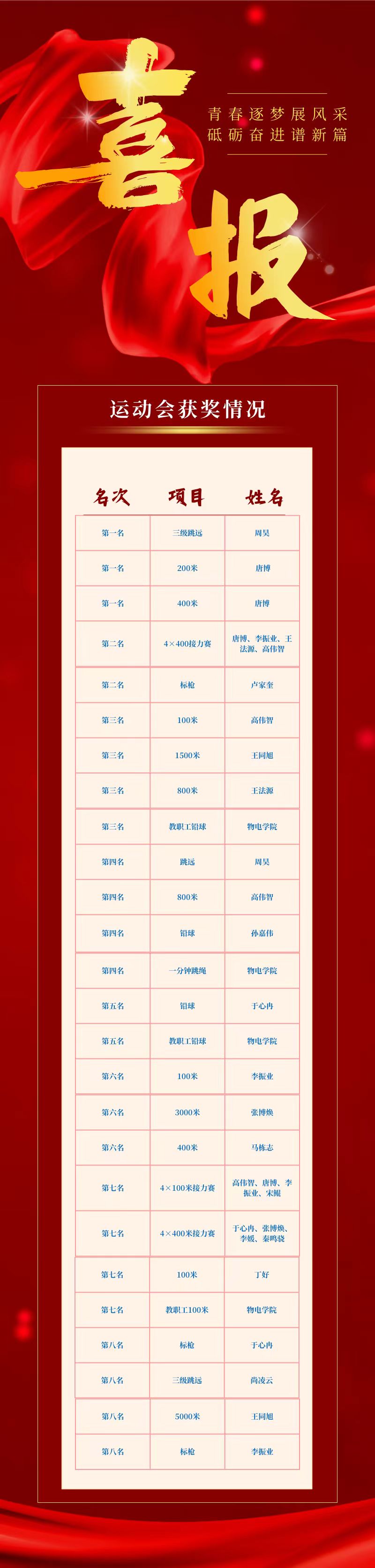 他们以汗水书写荣耀,以奋进之姿诠释奥林匹克体育精神。每一次超越都是实力的证明,每一次坚持都是自我的突破。经过两天的激烈角逐,凭借全体运动员的奋力拼搏与团队协作,最终荣获团体总分第二名的优异成绩。这份荣誉不仅是对运动员们辛勤付出的肯定,更是对物电学院团结一心、勇攀高峰精神的最好诠释。
